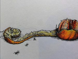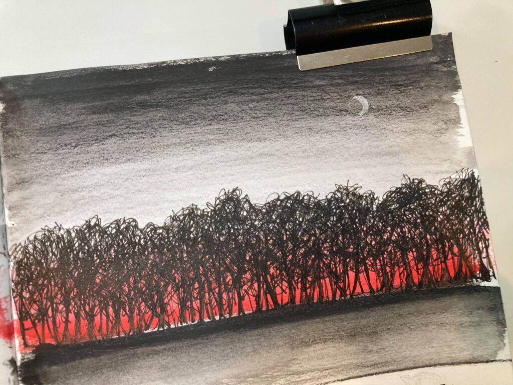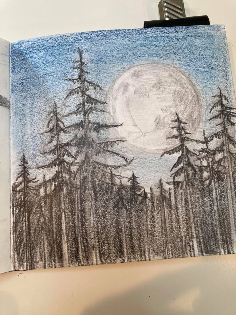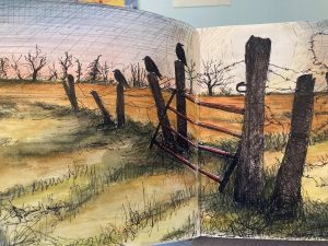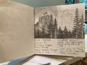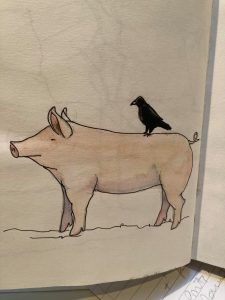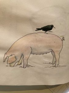 It can be fun to see what goes into an artist’s sketch book. Sometimes it’s preparatory work for a painting or print but sometimes it’s just for fun – an important way to keep creative juices flowing and techniques honed.